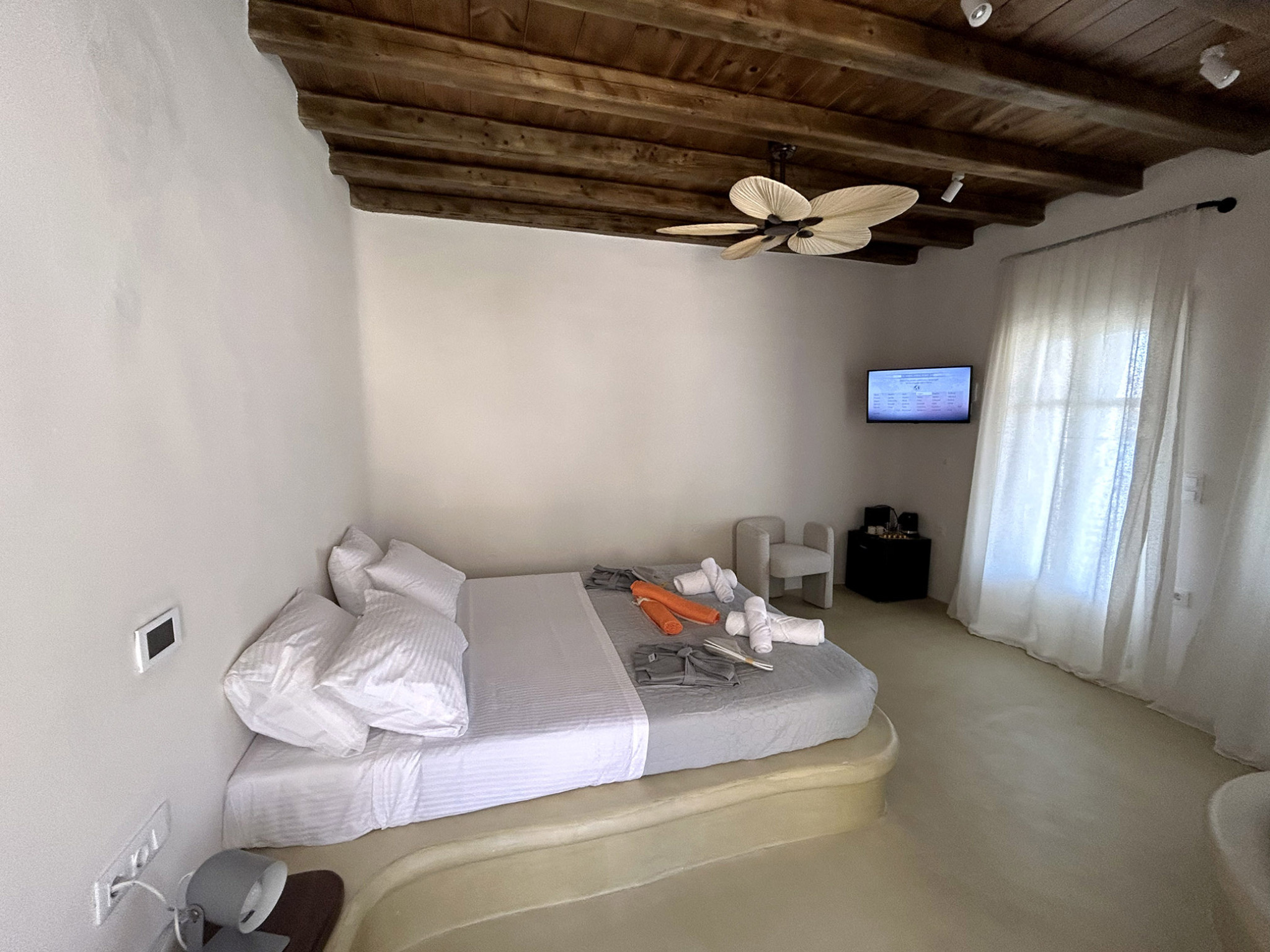 The rooms' decoration creates a cozy atmosphere, and the veranda gives you the opportunity to relax by having the endless blue of the Amorgian sea in front of you.